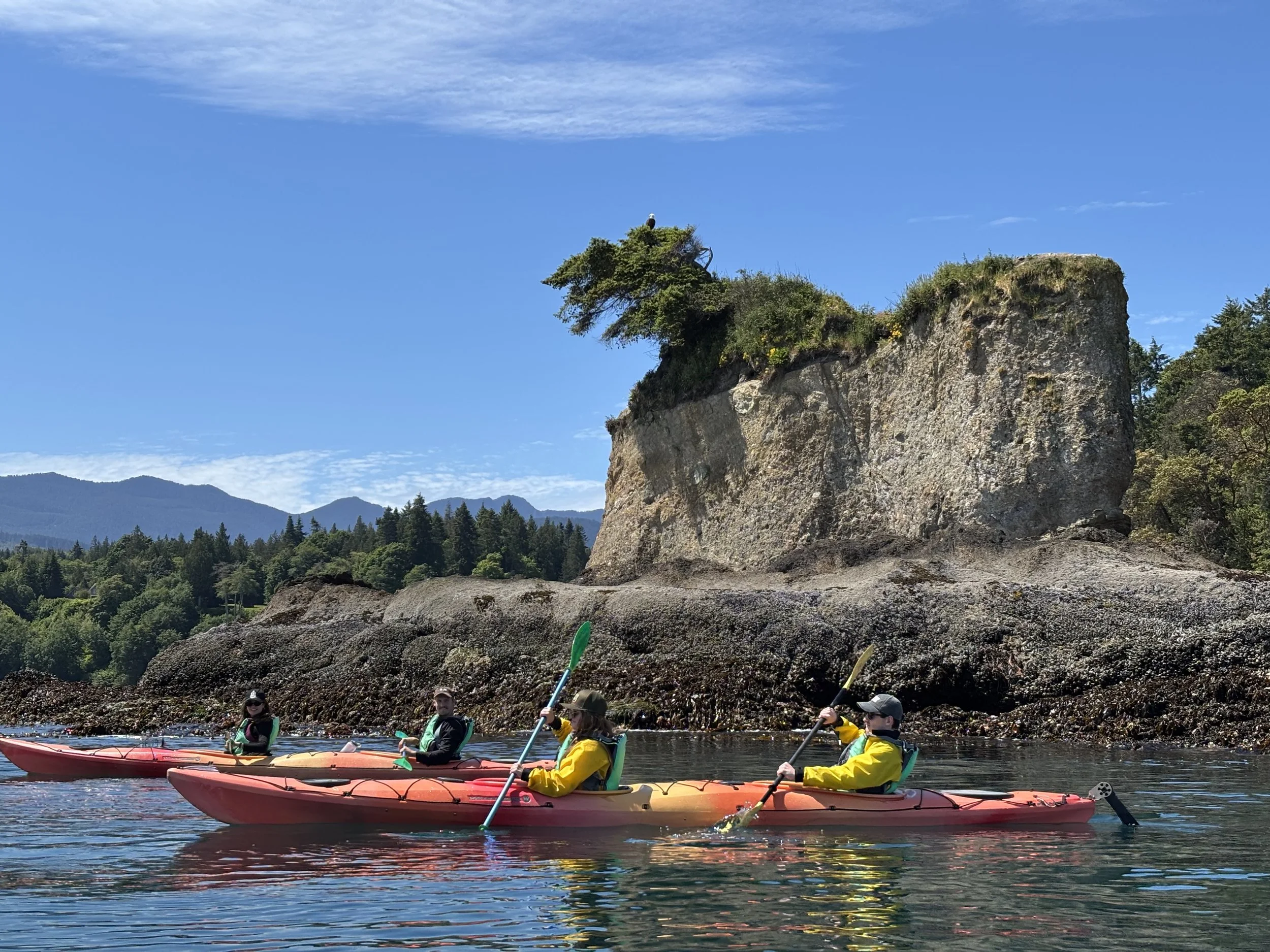 We had a fantastic experience with Hayden kayaking from the Fresh Water Bay County Park. The equipment was in good shape; we were provided with wetsuits and rubber booties and flotation vests. After the comprehensive safety briefing, we explored various coves at a casual pace. Our guide was well-versed in the coastal sea life and was an excellent travel companion for our small group. We were lucky enough to view 2 bald eagles, various sea birds and waders, one lone seal, a colony of harbor seals and a romp of river otters. It was an incomparable morning on the water.