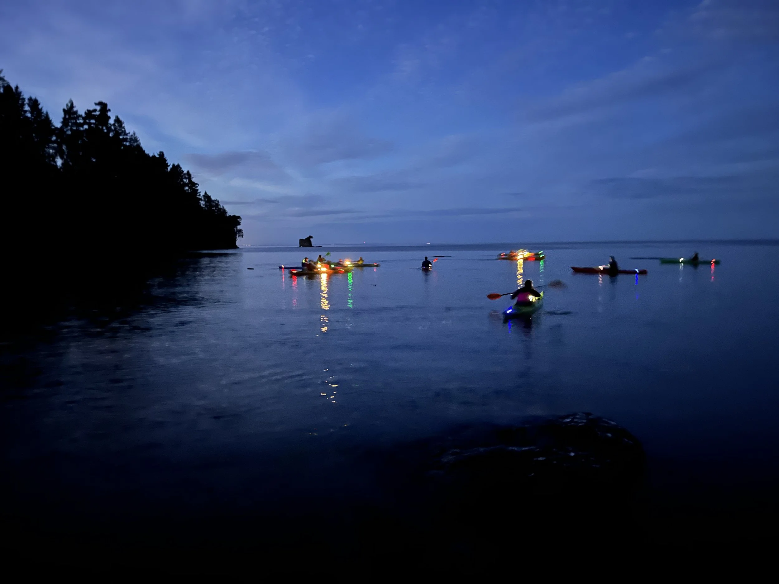 Our dark skies, far from light pollution, allow you to see the stars, fluorescent anemones, and possibly even bioluminescent plankton as you paddle in the peace of twilight
